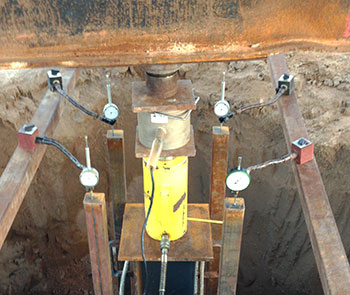 A norma brasileira que trata de provas de carga em fundação direta é a NBR 6489. Utilizando-se um cilindro hidráulico, são aplicados carregamentos verticais crescentes em estágios sobre uma placa de 80 cm de diâmetro, disposta em uma cava com a mesma profundidade da futura sapata. Registram-se os deslocamentos correspondentes às cargas aplicadas.